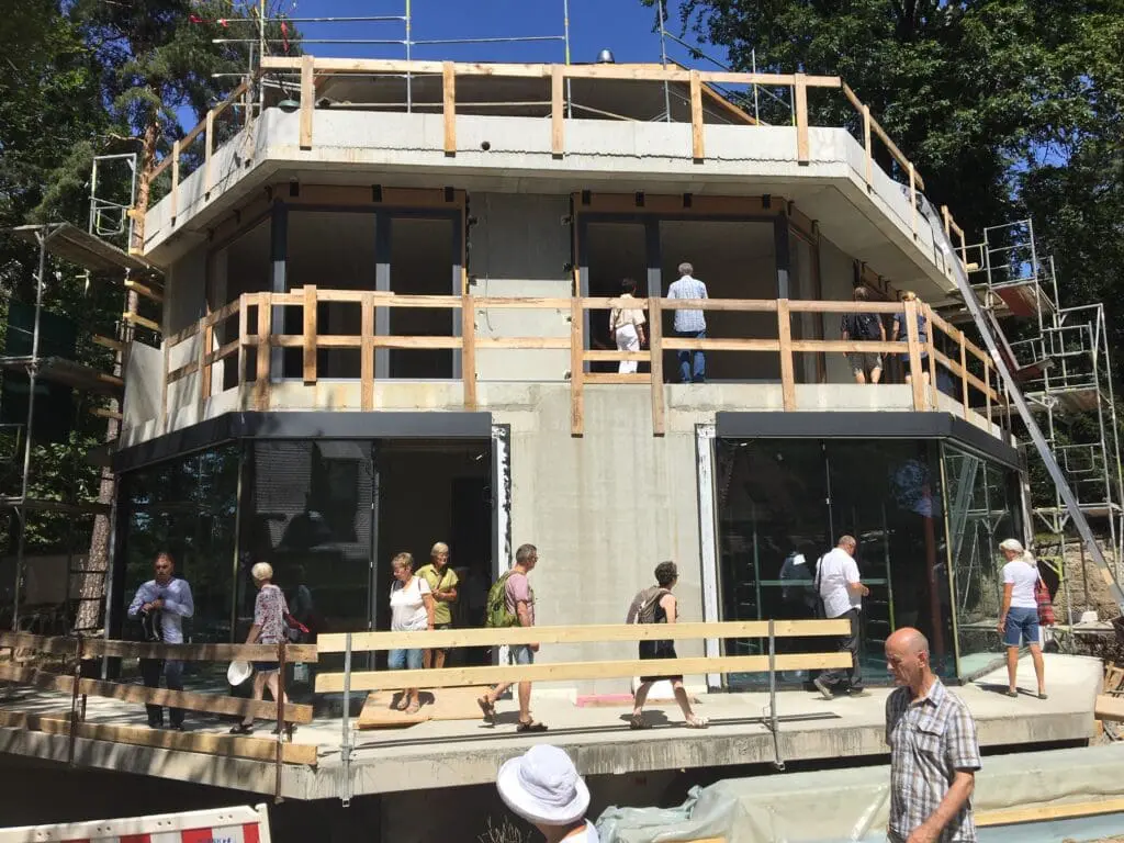Das fertiggestellte und bewohnte Haus „Die Villa am Elbhang“ öffnete seine Türen und zeigte zwei seiner Wohnungen und die Gesamtanlage im Außenbereich. Die prominente Lage mit Wasserblick bietet seinen Bewohnern exklusives Wohnen in Dresden und fand bei den ca. 70 Besuchern positive Resonanz bezüglich Gesamtanlage, Bauart und Wohnkomfort. Durch seine besondere Anordnung konnte auf ein zentrales Treppenhaus verzichtet werden, so dass jede der drei Wohnungen wie ein eigenes Haus mit eigenem Eingang wirkt.