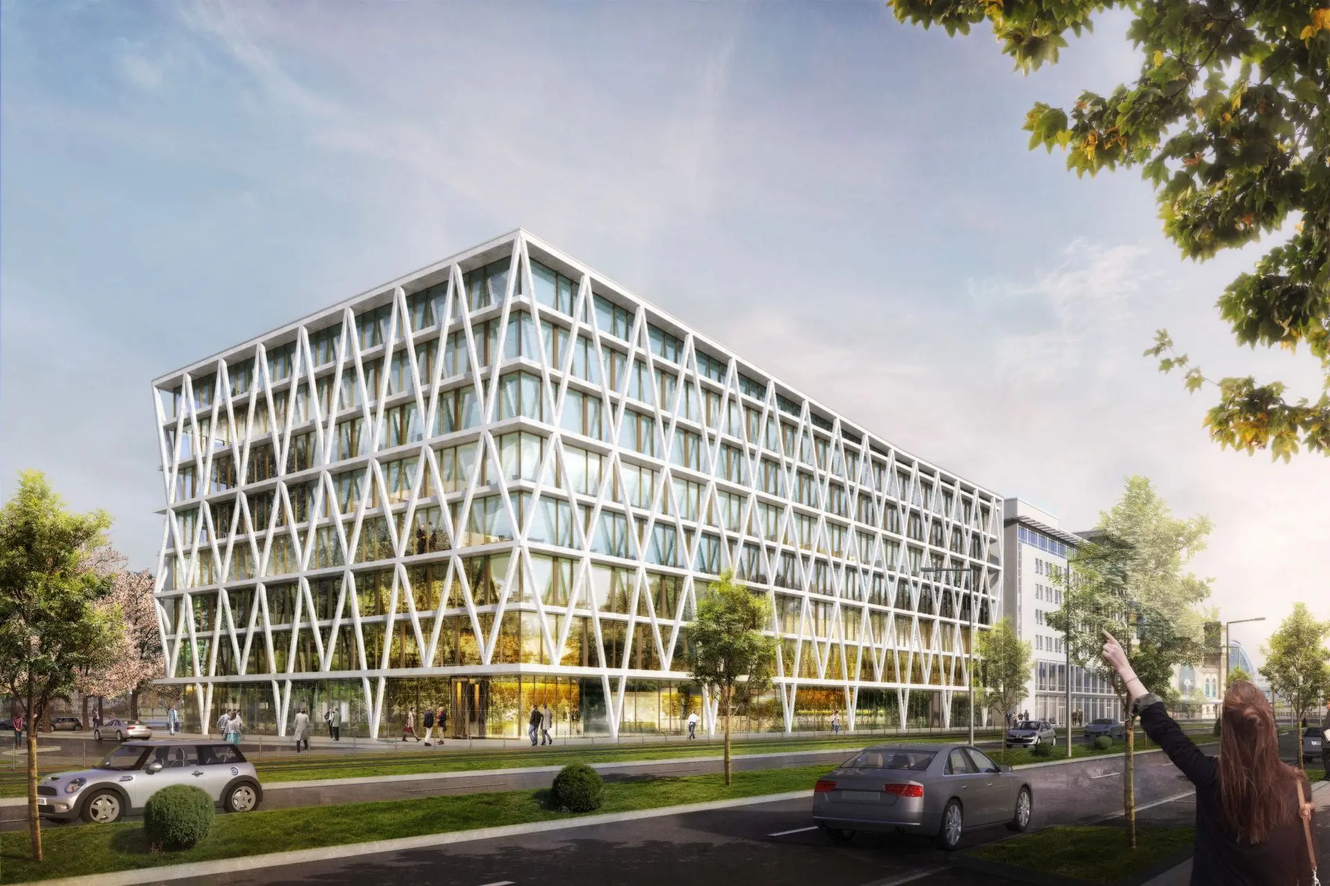 Neubau als Erweiterung zur gemeinsamen Hauptverwaltung der DREWAG/ENSO und Umbau des bestehenden Geschäfts- und Verwaltungsgebäudes für neue Arbeitsweltenmit Konferenzbereich und Kantine für 1670 Mitarbeiter.