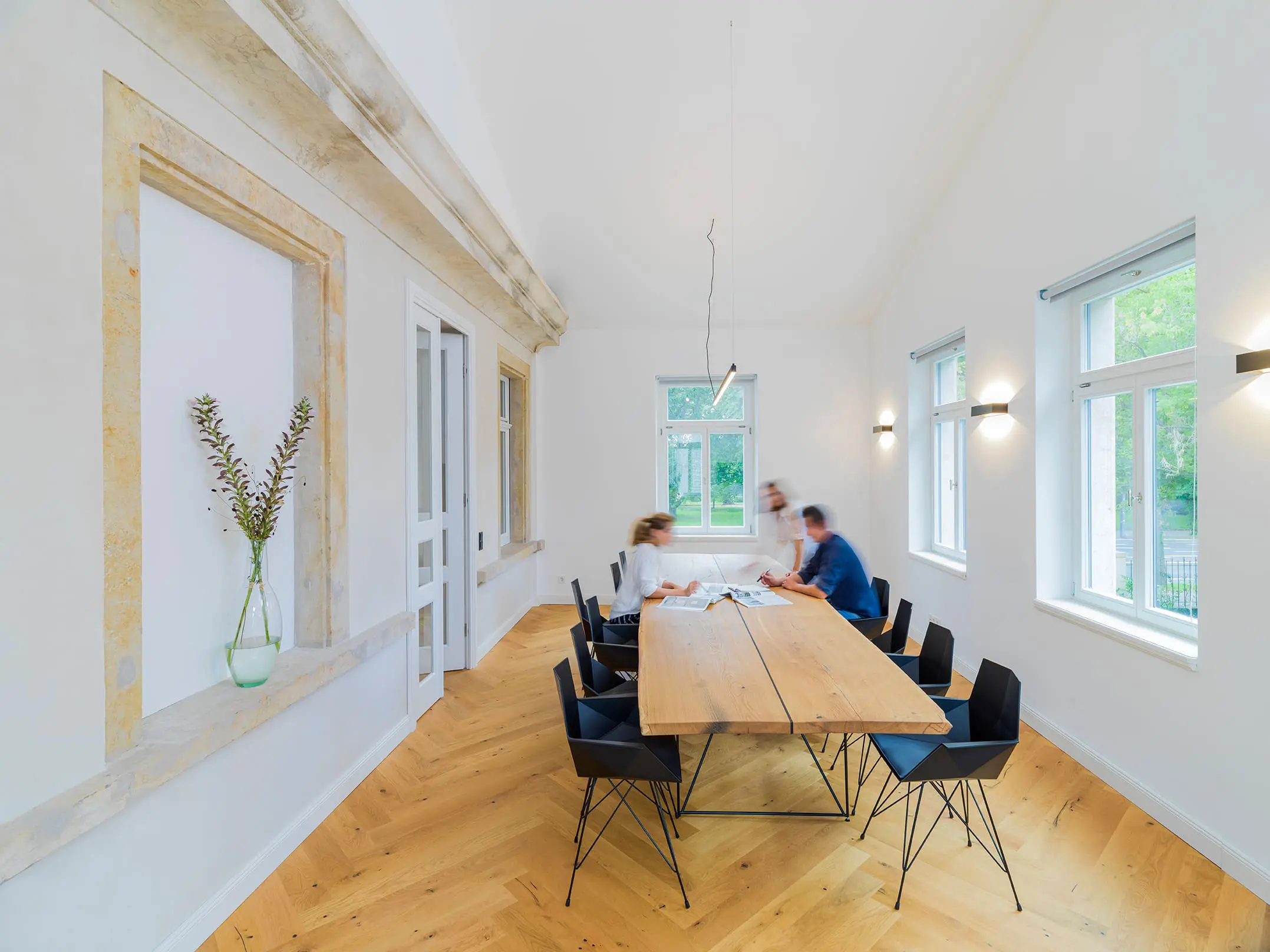 „Nach der Sanierung präsentiert sich die Villa aus dem Jahr 1827 mit einem gelungenen Mix aus historischem Bestand und moderner Designsprache. Im Innern besticht das puristisch gehaltene Ambiente mit einem spannenden Kontrast aus cleanen Flächen und konservierter rauer Vergangenheit.“