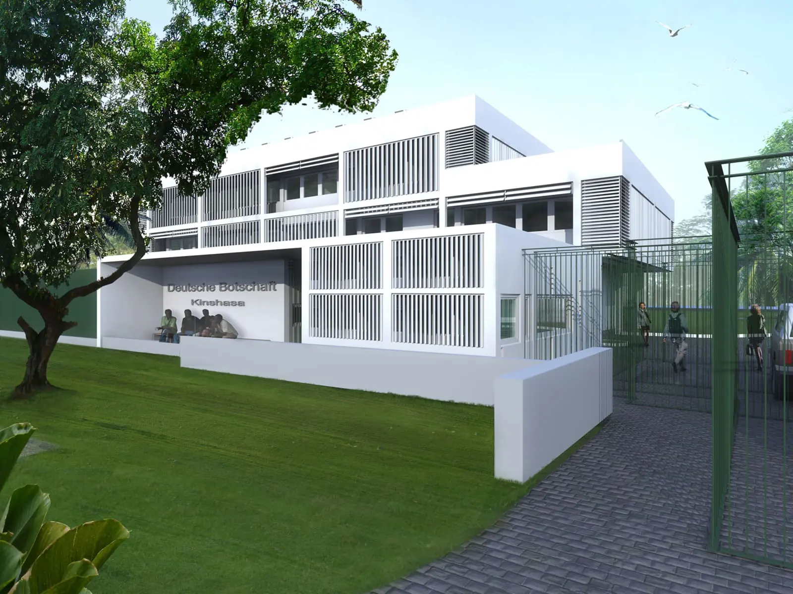 Die deutsche Botschaft in der Demokratischen Republik Kongo hat hohe Anforderungen an die bauliche Sicherheit. Für die Sanierung des Kanzleigebäudes sollen die Sicherheitsstandards nochmal erhöht werden. So sollen Einbruch- und Durchschuss hemmende Fenster und Türen eingebaut werden. Es sollen autarke Rückzugsräume errichtet werden.Die Visastelle wird neu geordnet und in der gesamten Kanzlei die Innenräume saniert. Es wird ein Neubau am Zugang zum Gelände errichtet, der als Warte- und Pufferbereich für die Visastelle dient. Im Zuge der Maßnahmen werden neue Kfz-Schleusen errichtet und die gesamte Zaunanlage erhöht und verstärkt. Die Maßnahmen werden im laufenden Betrieb durchgeführt.