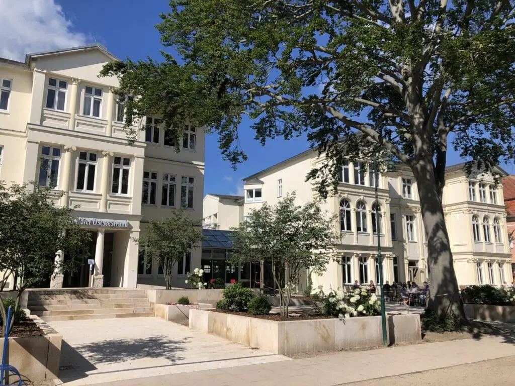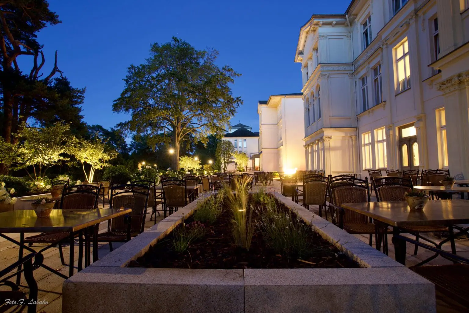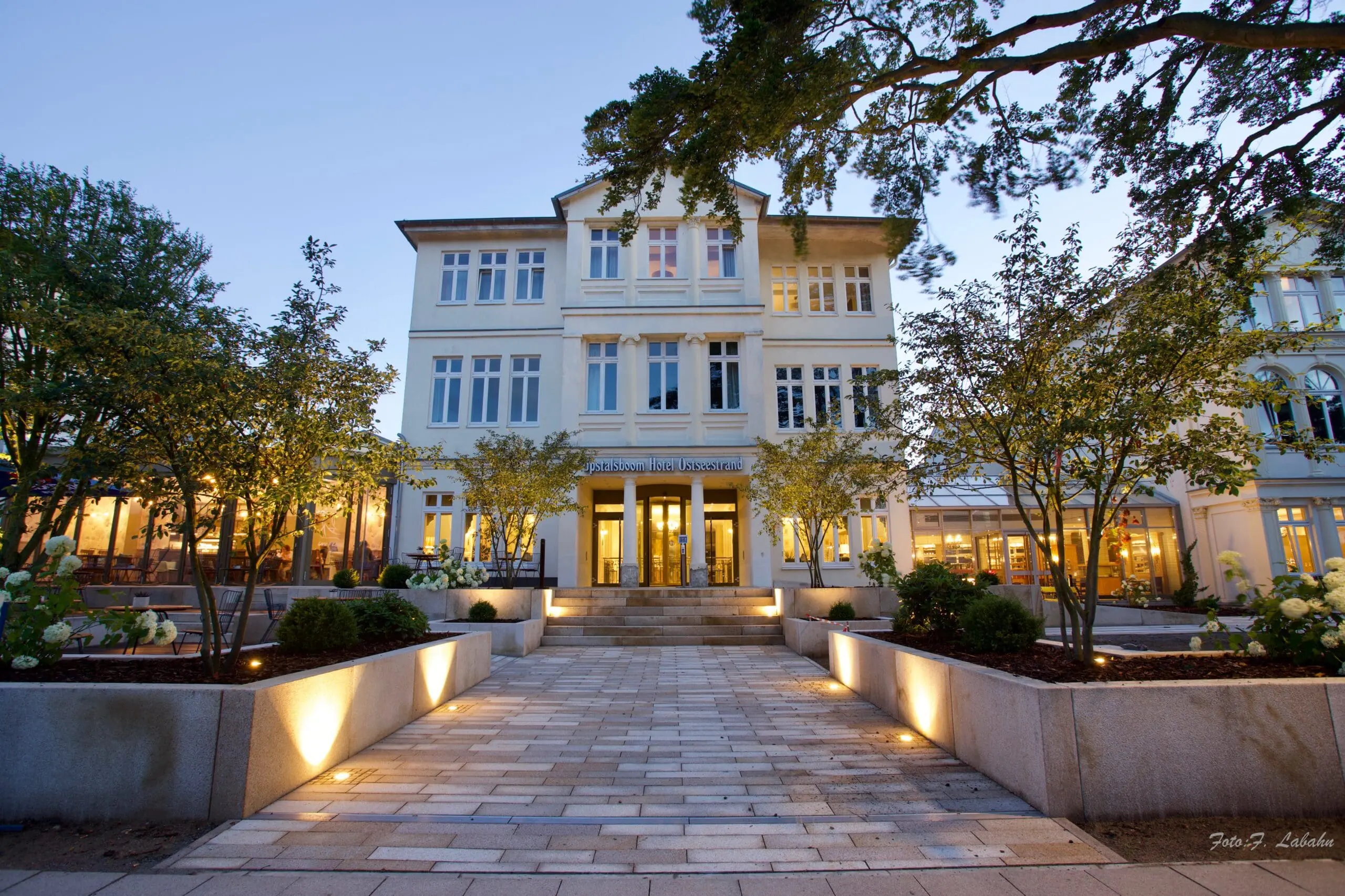 Die bestehende Hotelanlage des 4- Sternehotels, befindet sich in erster Reihe zur Ostsee und orientiert sich an der Strandpromenade. Die Anlage setzt sich aus vier Gebäuden mit unterschiedlicher Bauzeit zusammen.Die Gebäude sind direkt bzw. durch Zwischenbauten verbunden. Das Hotel verfügt über 99 Zimmer mit 4 Suiten. Im Erdgeschoss befindet sich neben dem Restaurant- und Bistrobereich der Massagebereich, welcher in den darunterliegenden Wellnessbereich mit Pool, Sauna, Hamam, Fitness und Private Spa übergeht.Der Wellness/Spa-bereich und die Zimmer, inkl. Suiten werden derzeit neugestaltet und modernisiert.