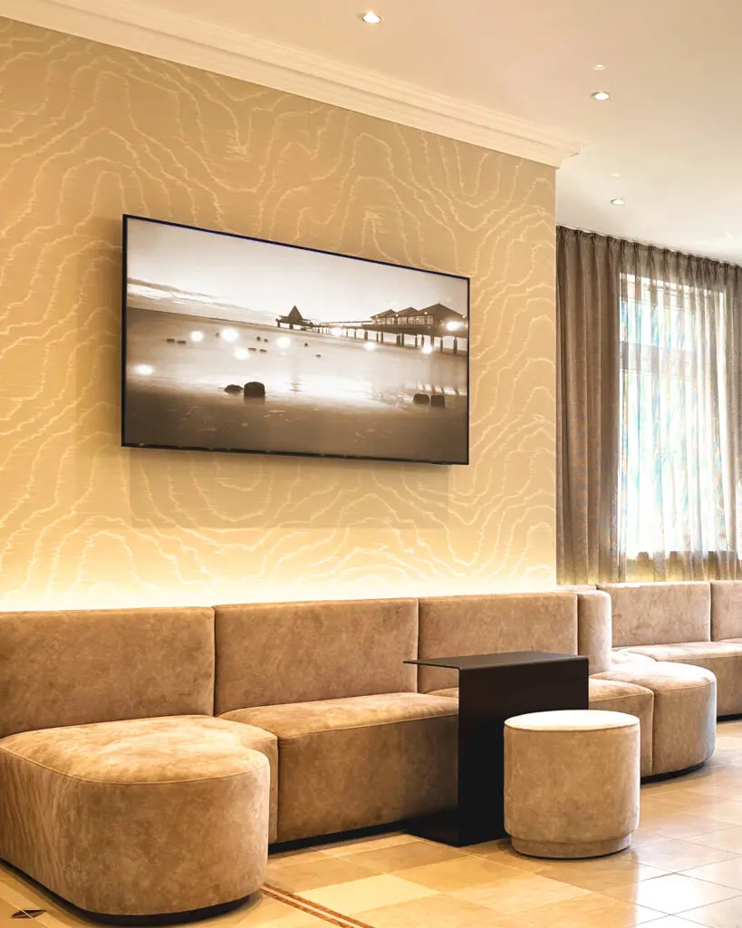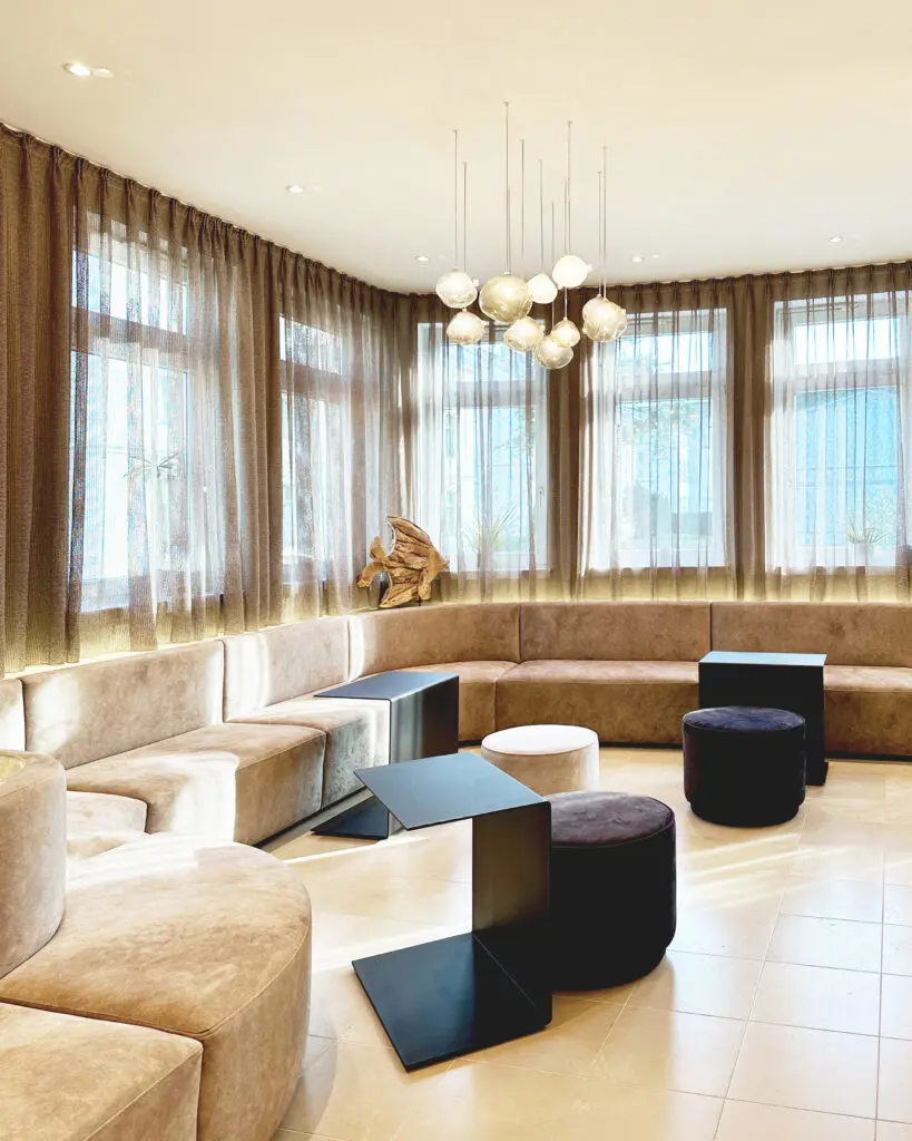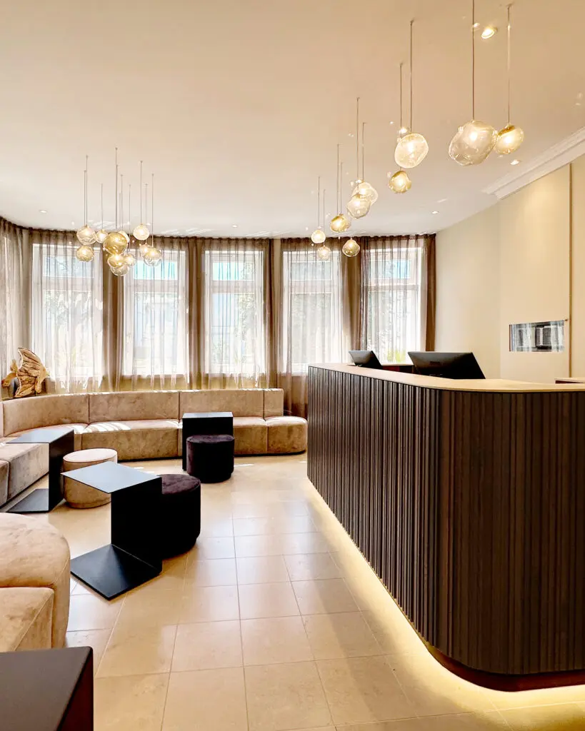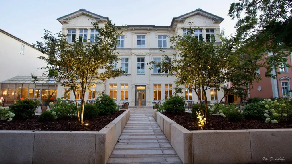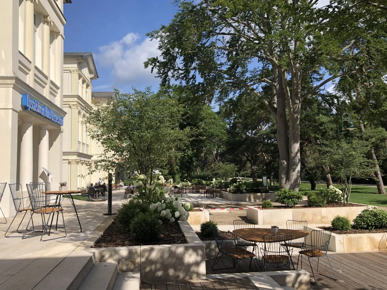 Die bestehende Hotelanlage des 4- Sternehotels, befindet sich in erster Reihe zur Ostsee und orientiert sich an der Strandpromenade. Die Anlage setzt sich aus vier Gebäuden mit unterschiedlicher Bauzeit zusammen.Die Gebäude sind direkt bzw. durch Zwischenbauten verbunden. Das Hotel verfügt über 99 Zimmer mit 4 Suiten. Im Erdgeschoss befindet sich neben dem Restaurant- und Bistrobereich der Massagebereich, welcher in den darunterliegenden Wellnessbereich mit Pool, Sauna, Hamam, Fitness und Private Spa übergeht.Der Wellness/Spa-bereich und die Zimmer, inkl. Suiten werden derzeit neugestaltet und modernisiert.