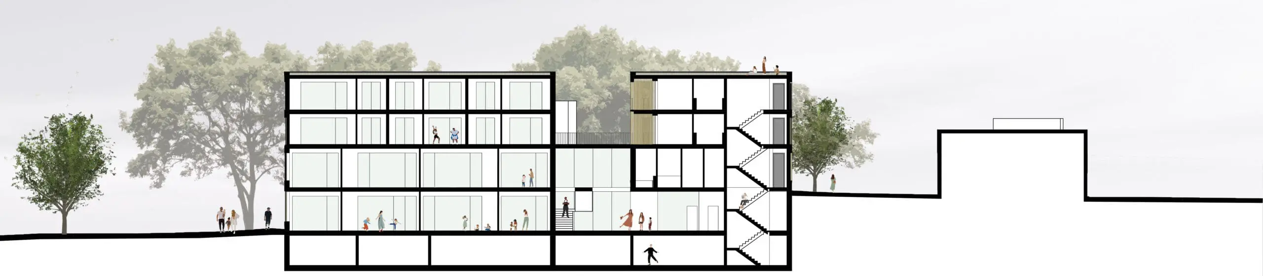Ein Wettbewerbsgebäude mit Mischnutzung von Wohnen und Kinderbetreuung