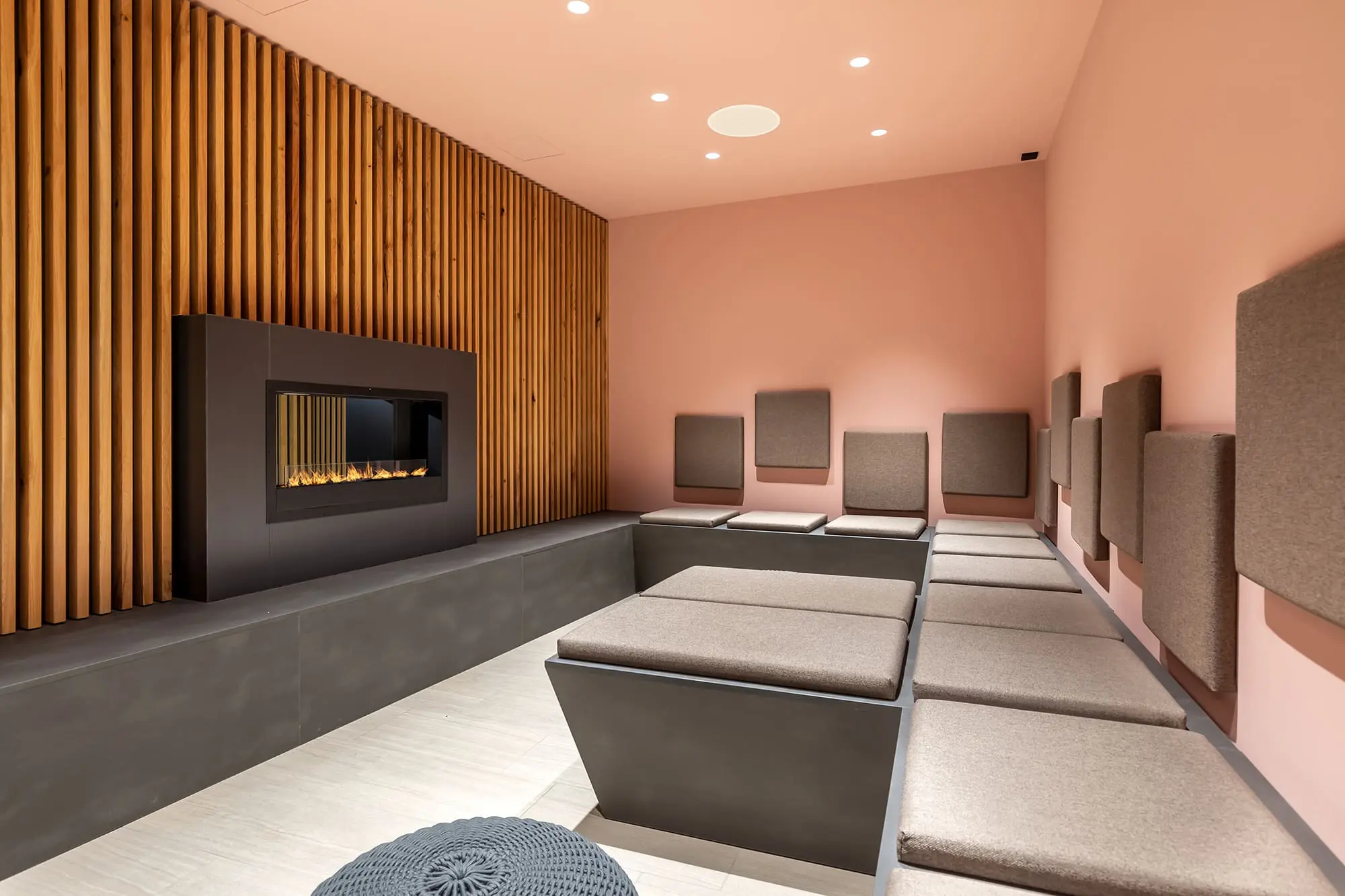 Das im Oktober 2020 eröffnete die Apartmentanlage „Upstalsboom Godewindpark Travemünde“ Im Ostseeheilbad Travemünde überzeugt nicht nur durch seine Architektur, sondern auch durch eine umfangreiche SPA-Landschaft mit Ruhebereich, Finnischer Sauna, Biosauna, Dampfbad, Fußbad, Erlebnisduschen und Eisbrunnen.­­ Das Farbkonzept interpretiert verschiedenste Hauttöne in der Freikörperzone und wird durch stärkere Akzente ergänzt. Dabei stimmt ein fließender Übergang, von hell zu dunkel, den Besucher von der Aktivität in die Kontemplation ein und erinnert an den Horizont der maritimen Lage.