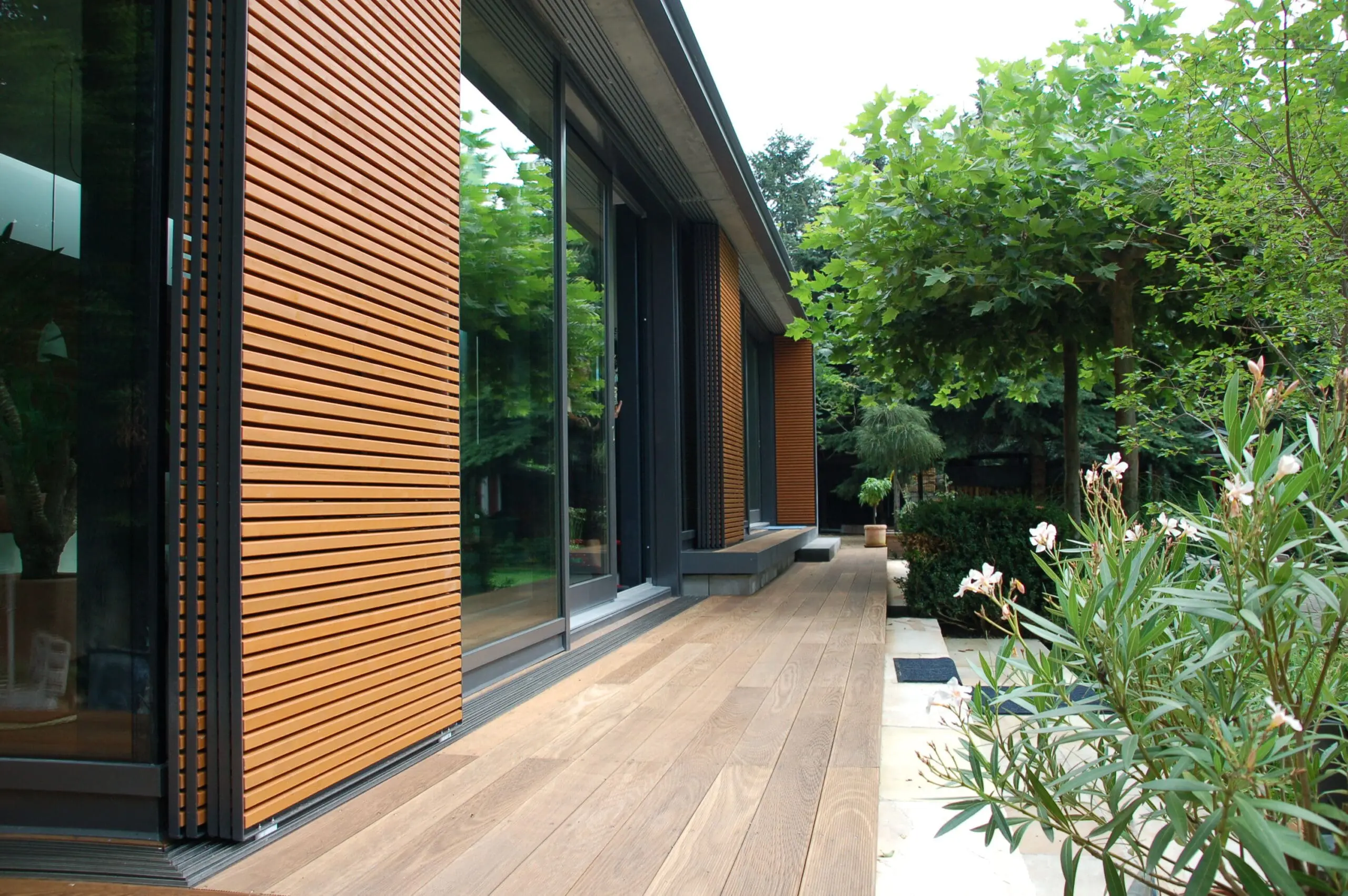 Der neue Glasanbau mit Gründach erweitert die bestehende Villa zum Garten und zum Ausblick hin. Schiebeläden geben den erforderlichen Sonnenschutz und spielen mit den Ein- und Ausblicken. Eine Lichtfuge bildet den Übergang zwischen Alt- und Neubau und führt Tageslicht bis in die inneren Räume. Durch die 3-Stufen wird der neue Wohn- und Essraum gegliedert ohne an Großzügigkeit zu verlieren.Die Fassade wird mit einem Stahlband umlaufend gefasst. Dies beinhaltet das Vordach sowie verdeckt liegende Bewässerung. Die Holzterrasse bildet mit der Sandsteintreppe einen Übergang in die freistehenden Außenterrassen. Die großzügigen Schiebefenster öffnen den Raum zum Garten hin und bilden mit den Freitreppen eine schöne Verbindung ins Grüne. Die durch die Hanglage sich ergebene Teilunterkellerung wird ein neuer Weinkeller mit feuchtigkeitsspeichernden Sandsteinen.