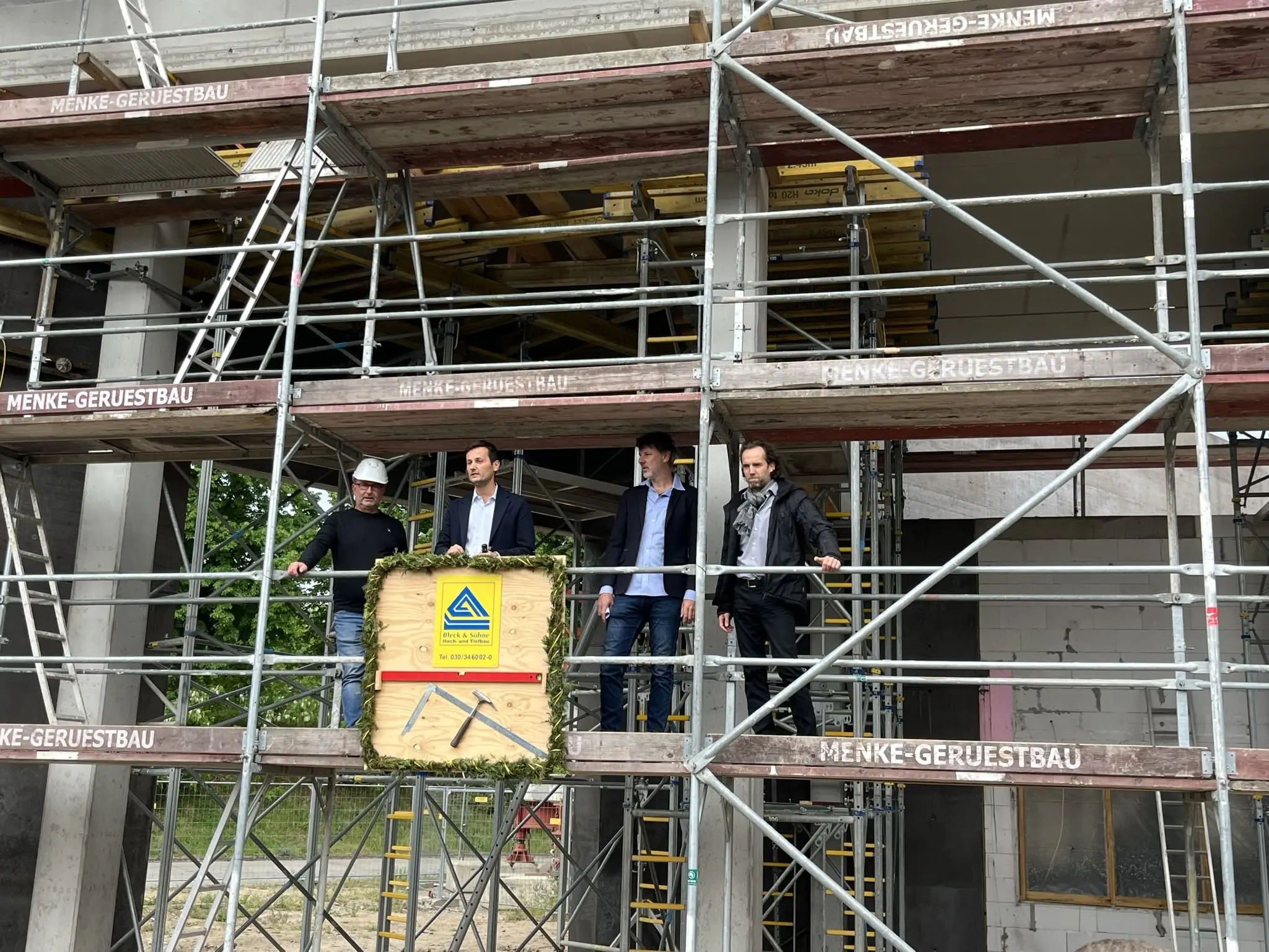 Zusammen mit der BIM Berlin, Bleck und Söhne und vielen Gästen stossen zwei unserer Inhaber David Berner und Stefan Skorupa an!