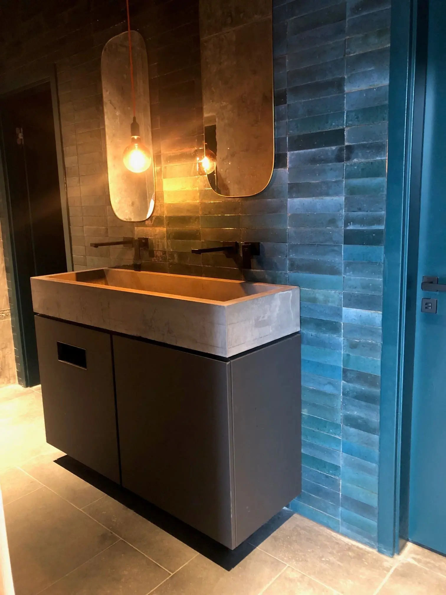 In unserem neuen Berliner Standort haben wir unser eigenes Betonwaschbecken gegossen. In Ermangelung einer passgenauen Lösung, die gut mit unseren Subway-Tiles harmoniert, hat das Berliner Team kurzerhand eine eigene Lösung entworfen und wir finden: Das Ergebnis überzeugt.